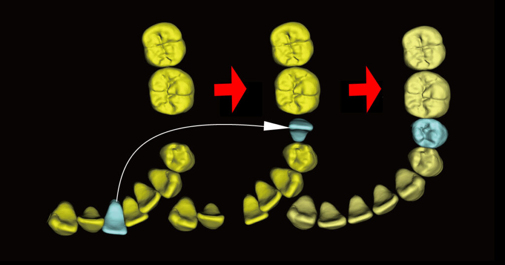叢生小臼歯を保存不能の大臼歯部に移植利用